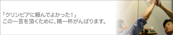 私たちクリンピアスタッフは変化するお客様のニーズを先行的に捉え、 「お客様の心に満足と感動を生むサービス」の提案を目指します。